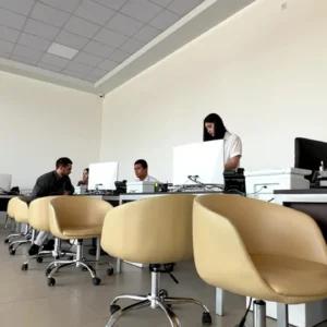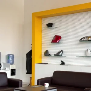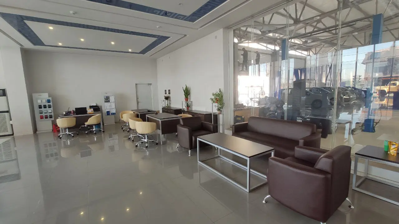Полы покрыты прочными и лёгкими в уходе материалами, а аксессуары добавляют завершающий штрих, формируя уютную и профессиональную атмосферу в каждом автосалоне.