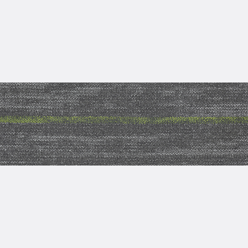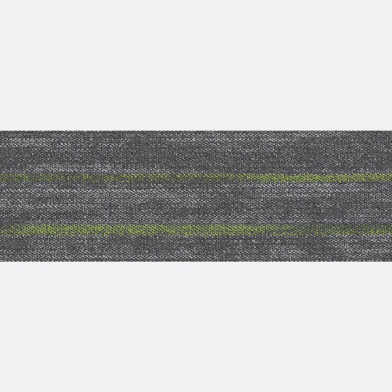 Ковровая плитка Polar 6 — коммерческое напольное покрытие в формате планки 333×1000 мм, разработанное для современных офисных пространств с высокой нагрузкой. Изготовлена из износостойкого полиамида PA6 с петлевым ворсом, устойчива к истиранию и продавливанию мебелью. Серый базовый цвет практичен в эксплуатации и хорошо скрывает пыль и прочие следы, а акцентные зелёные полосы добавляют интерьеру динамики и индивидуальности. Форма плитки позволяет экспериментировать с укладкой — «ёлочка», кирпичная кладка, смещение — и легко сочетать модель с другими дизайнами коллекции Polar.