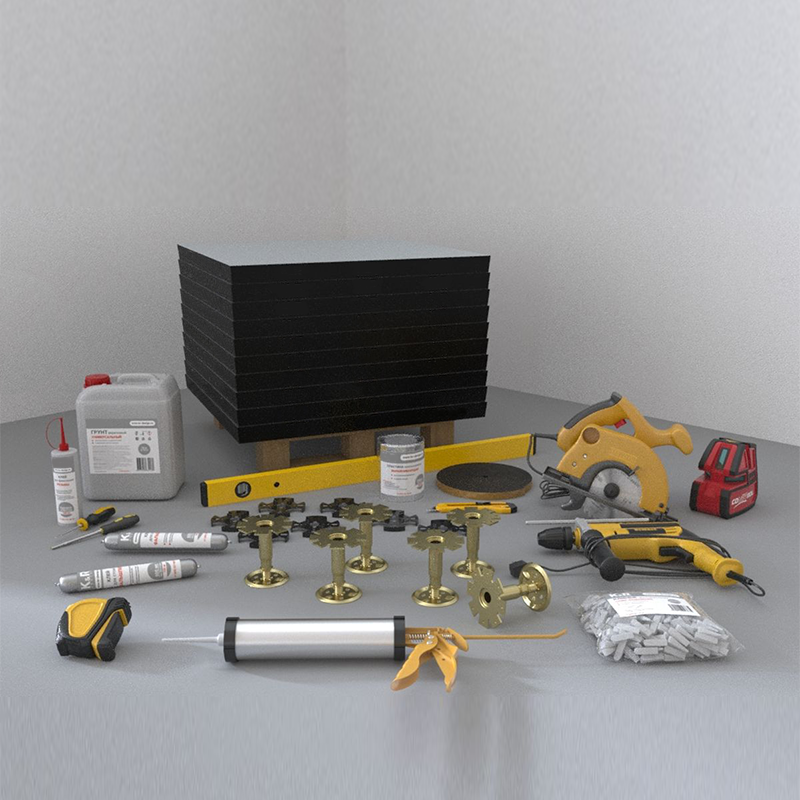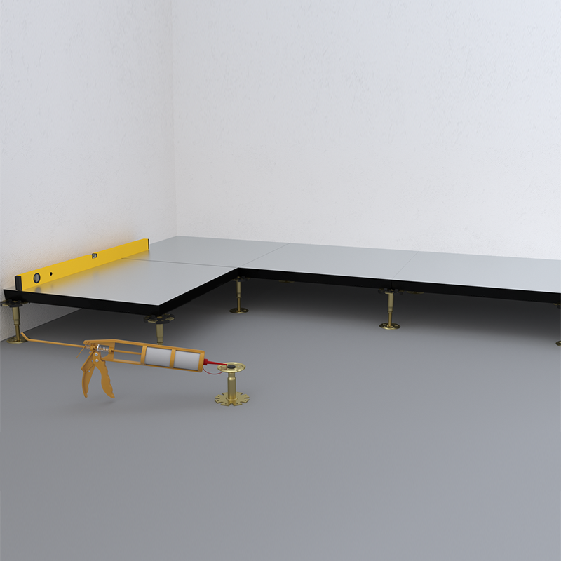 Монтаж фальшпола в Ташкенте. Панель фальшпола с демпферной лентой. Фальшпол Anker в Узбекистане.